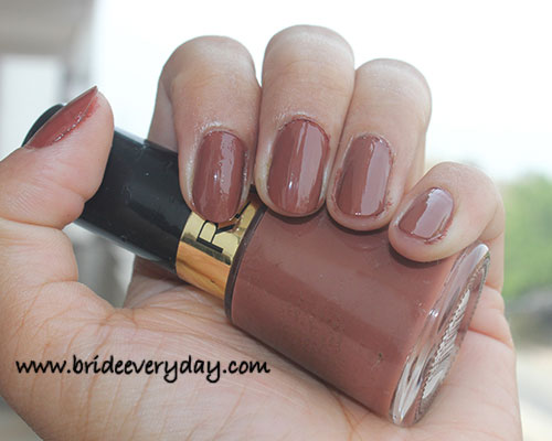 Revlon Totally Toffee (shade no: 415) – This is a chocolaty shade, quite similar to dairy milk silk (yummy). The moment I saw this shade on the display shelf I knew I was going to get that. It goes with almost every colour outfit. It has a bad chip off time, and the glossy sheen also fades away after 1.5 days. I prefer to wear this shade on my toe nails as it makes them look fairer without chipping off that early. :whistle:
