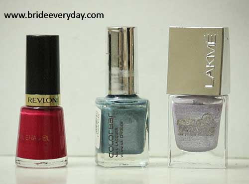 Nail Paints: Not to mention I am a nail paint freak :nailfile: . I never return from a shopping spree without purchasing nail paints- at least one is must. This time I have bought 3 nail paints: Revlon cherry berry, Colorbar exclusive and Lakme fast and fabulous (shade name is not mentioned there :scratch: ). All 3 are pretty shades, but as we speak I like cherry berry the most.