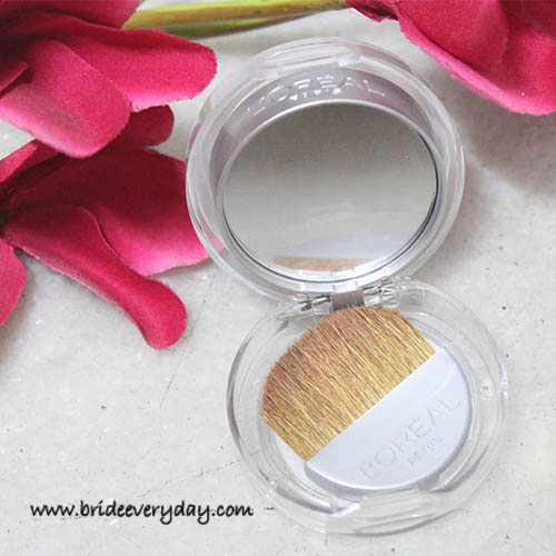 L’Oreal true match’s 205 is an earthy beige shade. For dark to medium skin tones, this blush will do a good job for contouring. The encased brush, being a flat semicircular brush is perfect to do the contouring part. The texture is smooth satin, with no fall out. Once applied it settles on to the skin, without giving chalky appearance. This is a sheer to buildable shade with minimal sheen.