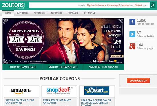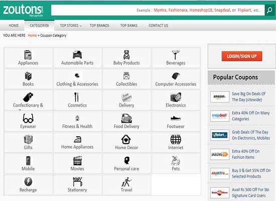 Zoutons, also offers brand wise coupons which further reduce the effort of users in finding appropriately matched coupons to their shopping needs.