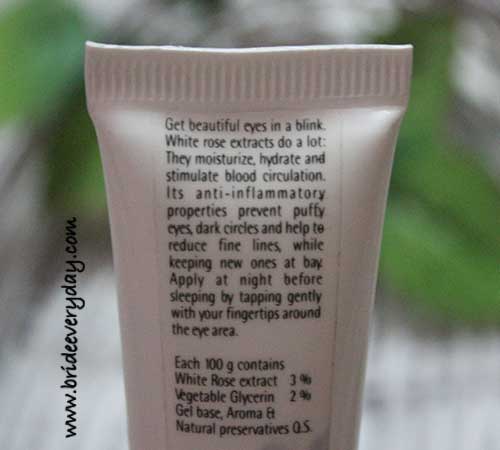 Price of ‘The Natures Co White Rose Under Eye Gel‘: INR 345 for 20ml