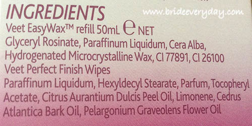 Ingredients of ‘Veet Easy Wax Electrical Roll On Kit’