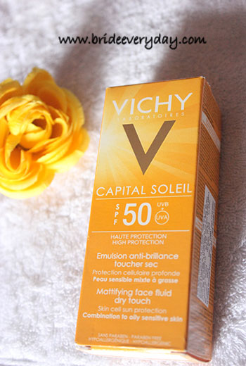 Price of ‘Vichy Capital Soleil SPF 50 Mattifying Face Fluid Dry Touch’- INR 1090 for 50 ml.